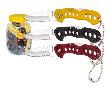 Product: Can of 36 pocket knife key-rings, Name: , Brand: ALBAINOX, Blade Size: 4.40cm, Handle Type / Color: ABS/Assorted colours