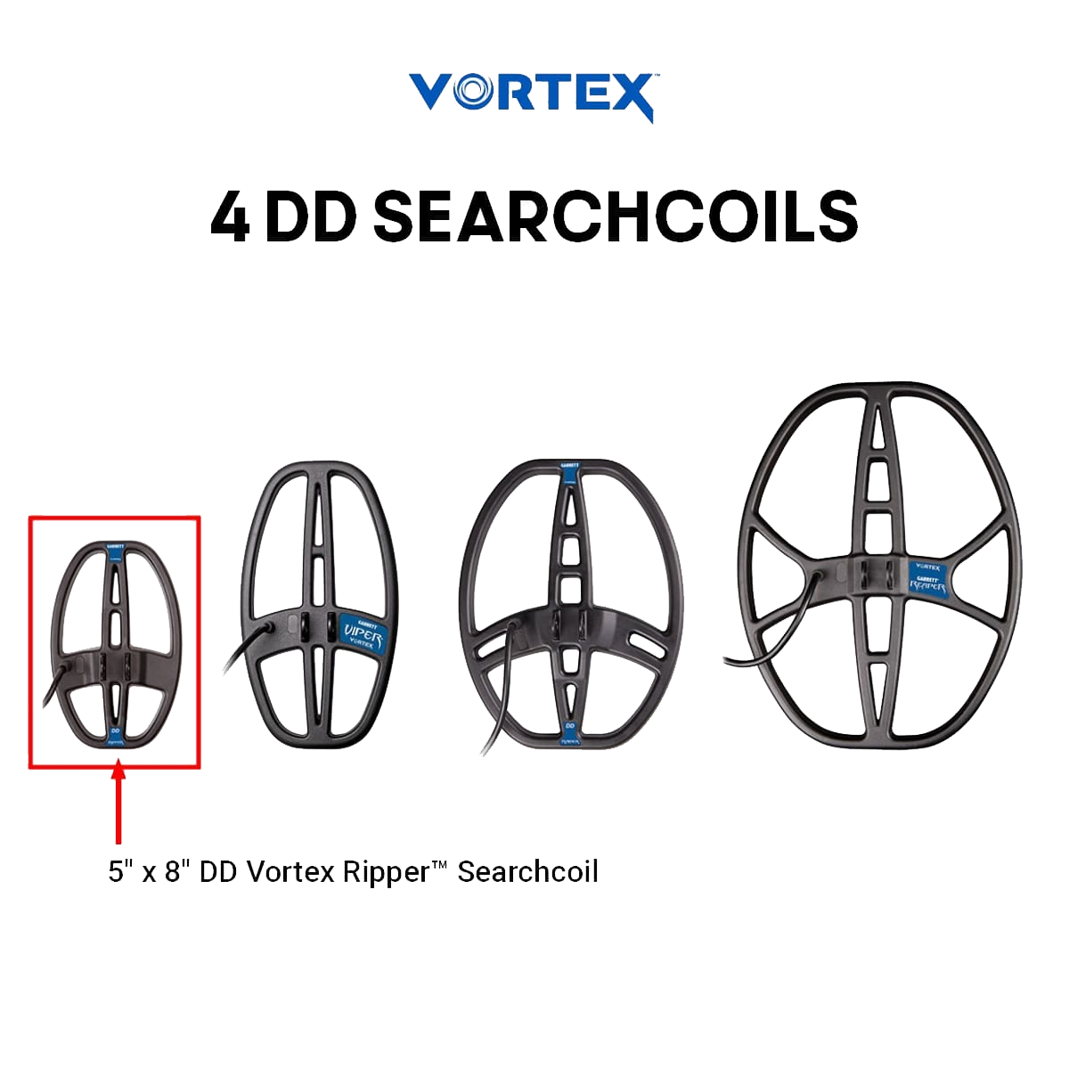 Βελτιωμένη ανίχνευση: Η συγκεντρωμένη ενέργεια ανίχνευσης σε ένα πηνίο αναζήτησης Vortex Ripper 5″ x 8″ το καθιστά ιδανικό για την ανίχνευση κοσμημάτων, μικρών σπειρών και ακόμη και ψηγμάτων χρυσού.