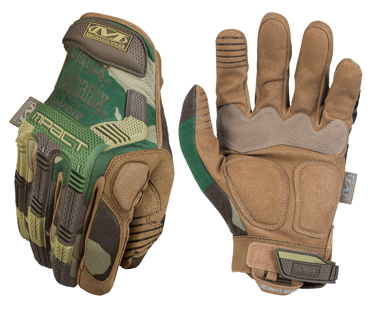 Τα γάντια M-Pact Woodland Camo έχουν σχεδιαστεί να προστατεύουν και να βοηθούν στην παράλλαξη στρατιωτικών και ειδικών δυνάμεων στις ορεινές περιοχές με ποικιλία βλάστησης. Το θερμοπλαστικό καουτσούκ (TPR) με ικανότητα απορρόφησης κραδασμών παρέχει ευέλικτη προστασία στο πεδίο ενάντια στους τραυματισμούς και τις εκδορές. Η κατοχυρωμένη με πατέντα Impact Guard® απελευθερώνει τον δείκτη για την ομαλή είσοδό του στον υποφυλακτήρα σκανδάλης και προσφέρει ελευθερία στην κίνηση κατά την διάρκεια σκληρής εργασίας. Η εσωτερική ενίσχυση διπλής στρώσης στα ακροδάχτυλα προσφέρει βελτιωμένη αντοχή στον αντίχειρα και τον δείκτη. Το επίθεμα XRD® στην παλάμη απορροφά τους κραδασμούς και τις δονήσεις για να μειώσει την κούραση στο χέρι κατά την πλήρη εμπλοκή.