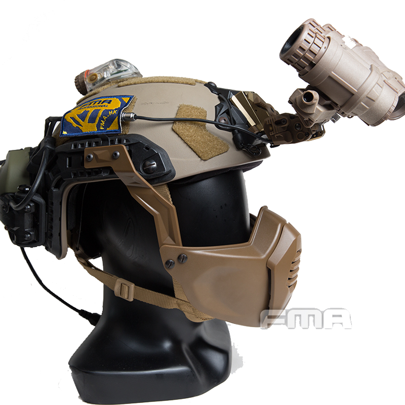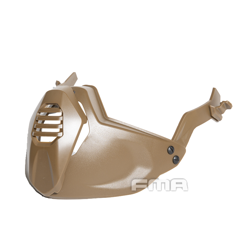 * Η FMA παρέχει μια ελαφριά επιλογή προστασίας της γνάθου με αυτό το προστατευτικό γνάθου από υλικό ABS, το οποίο συνδέεται με τη θέση της ράγας του κράνους μέσω δύο μεγάλων πλαισίων.