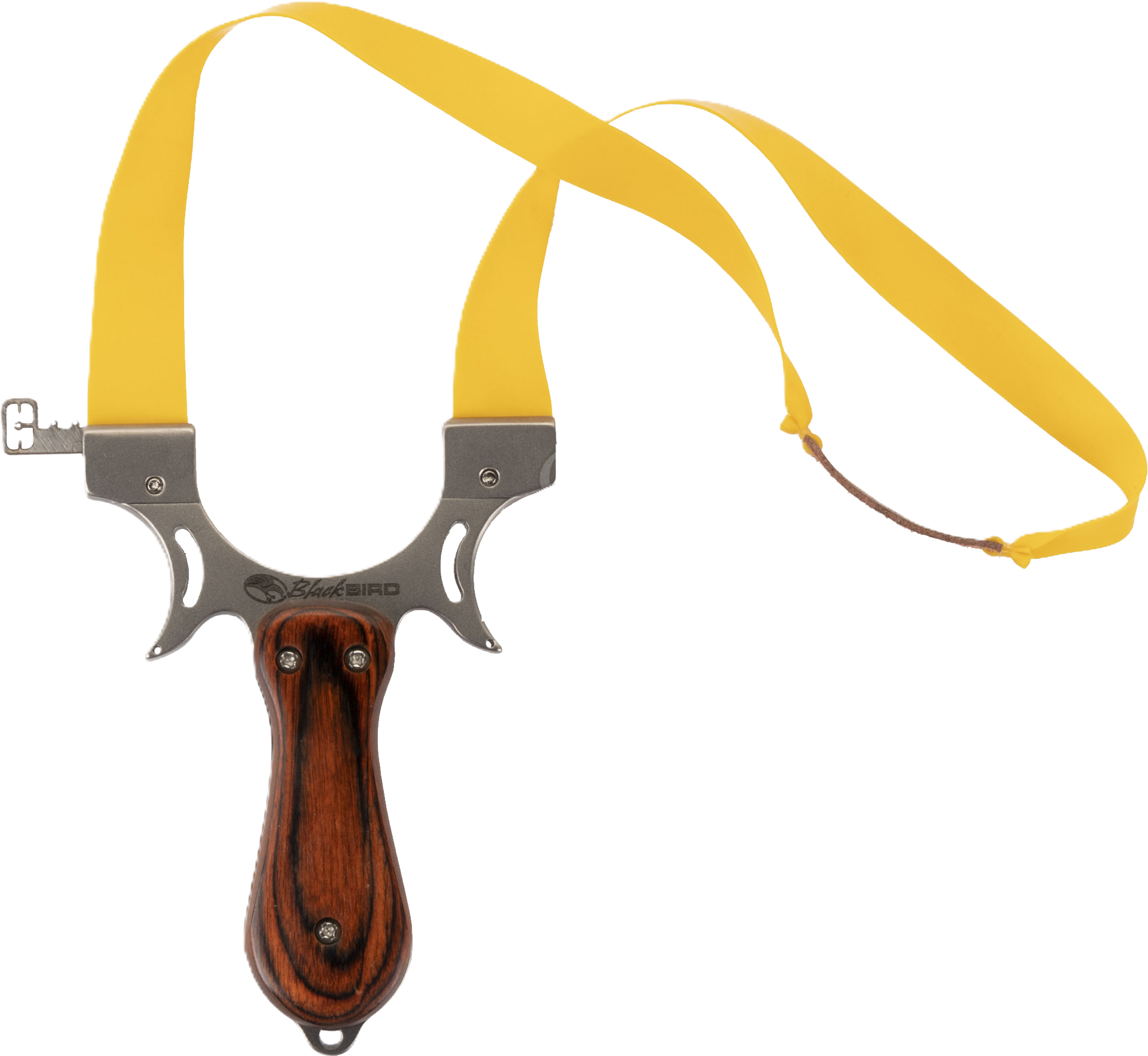 Εργονομικός, μεταλλικός σφεντόνας τσέπης με πρακτική λαβή με επένδυση από ξύλο και οπές σκόπευσης από οπτικές ίνες.