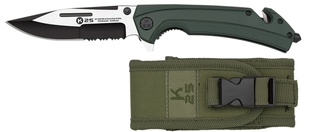 Σουγιάς K25 tactical pocket knife. Green G10.Saw, 25235