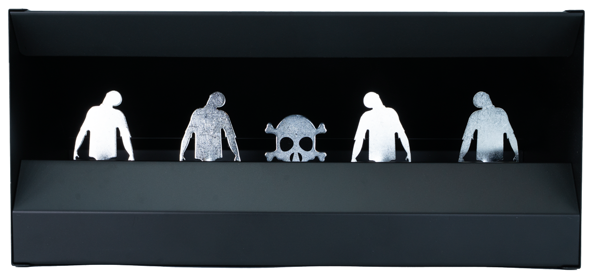 Κατασκευασμένο για αεροβόλα με μολυβένιο ή ατσάλινο βλήμα, αυτό το ανθεκτικό μεταλλικό σύστημα στόχων μετατρέπει κάθε βολή σε μάχη για επιβίωση.