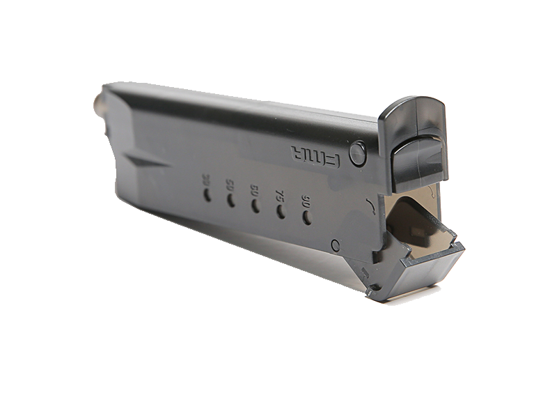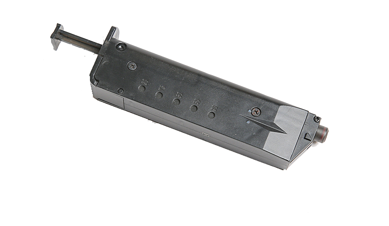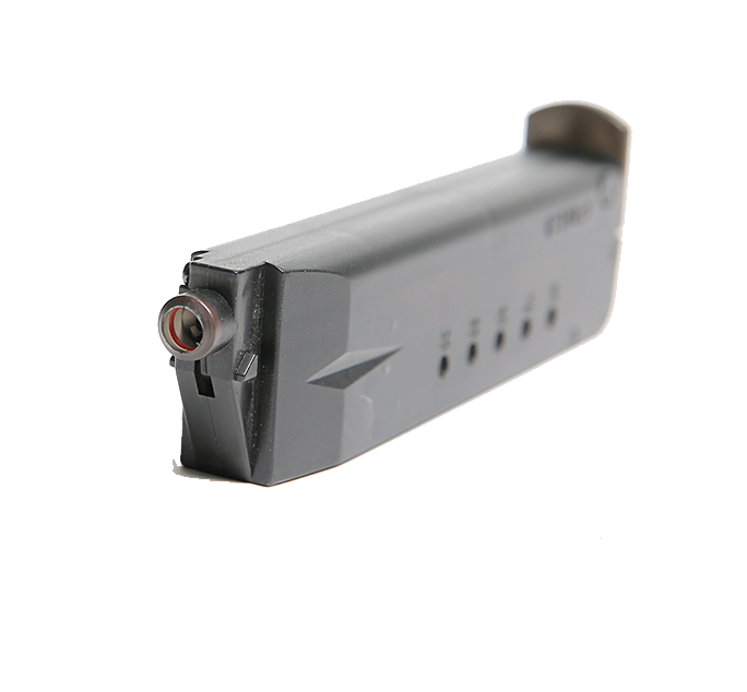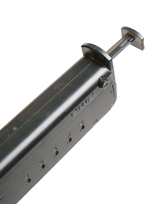 Το σχήμα του, του επιτρέπει να τοποθετηθεί σε θήκη γεμιστήρα πιστολιού.